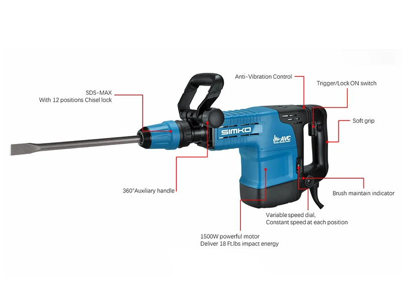 ● 6-steps setting wheel and constant Speed Control for variable adjustment of the speed and impact rate for optimum performance .